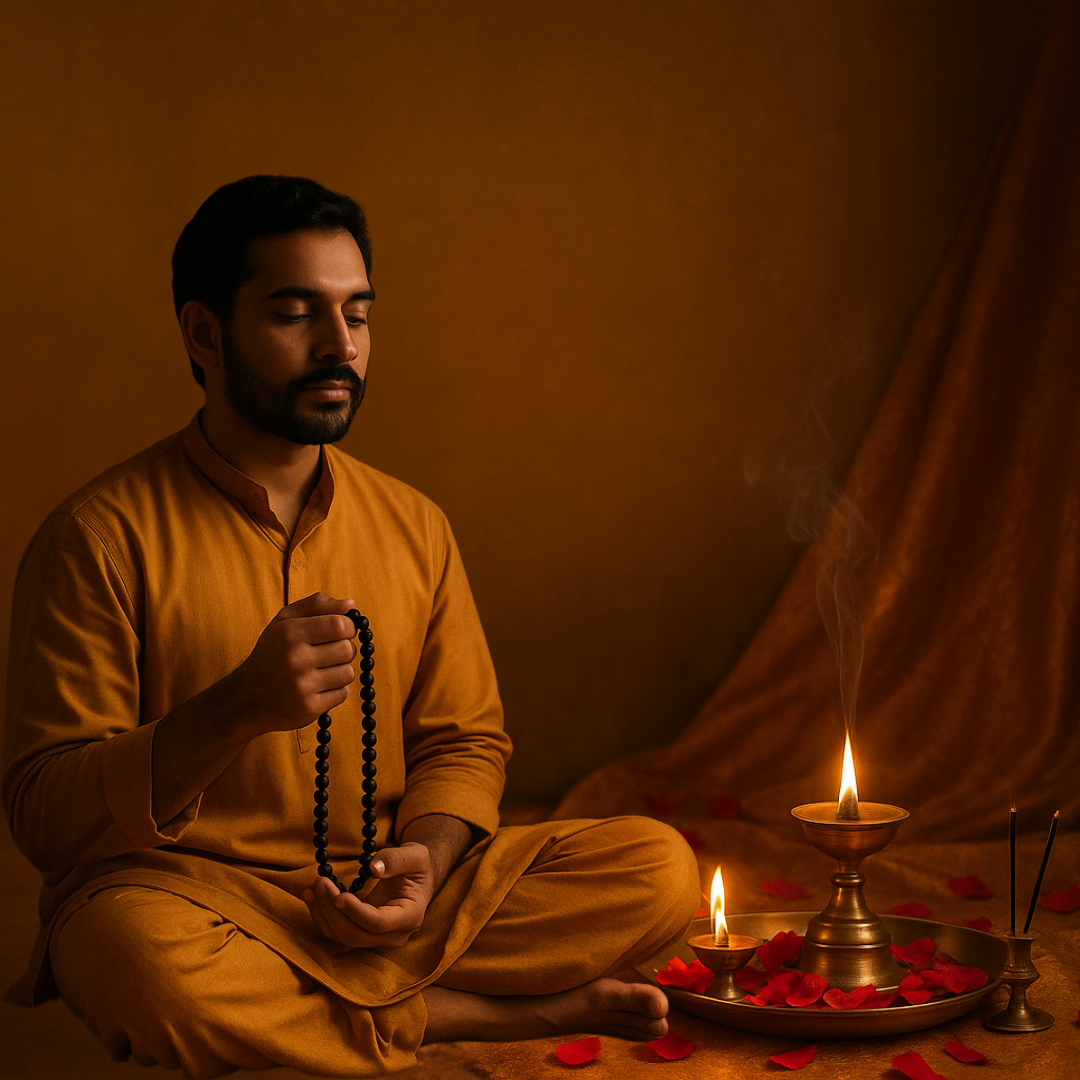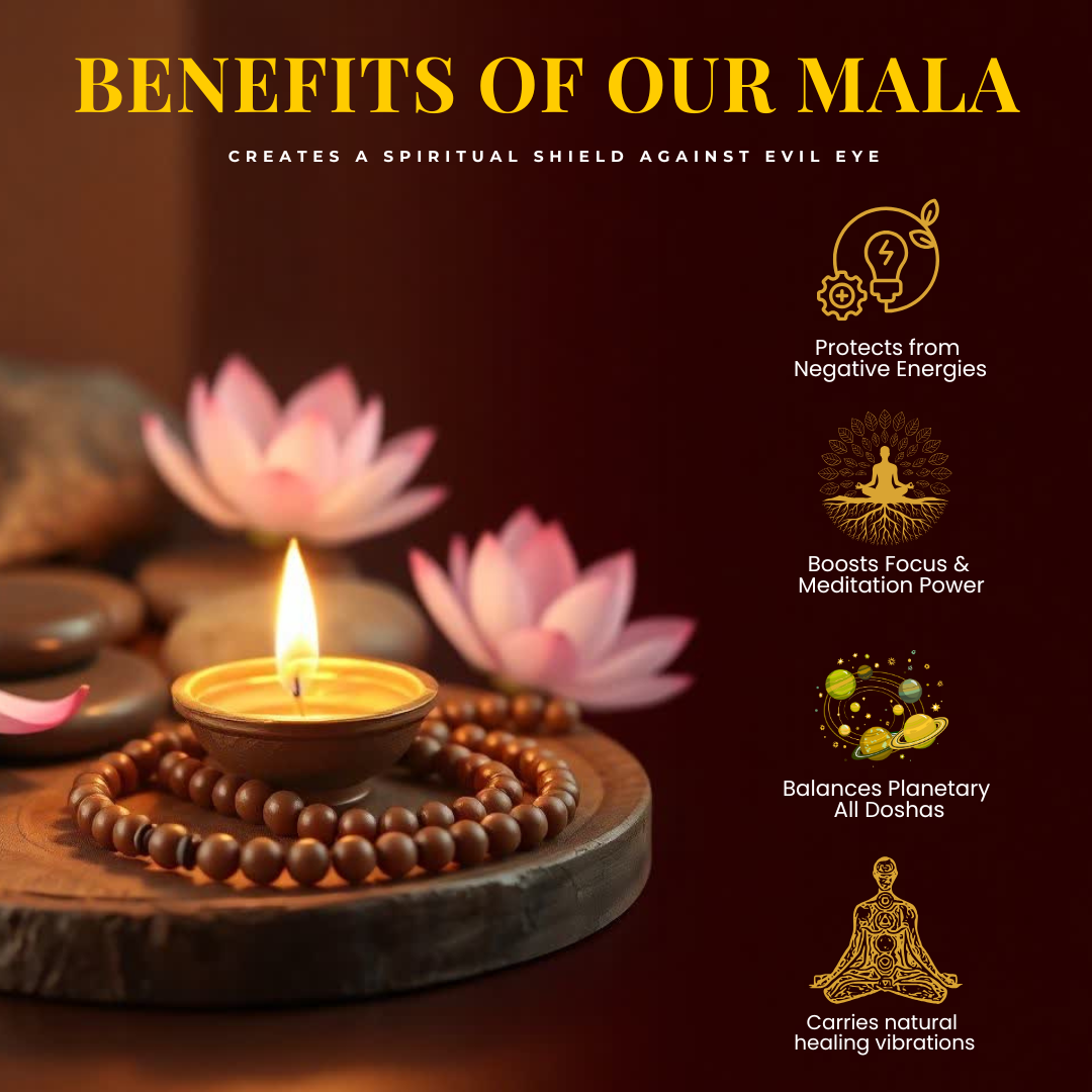 • 1 × 108‑bead Karungali Mala (8 mm beads, approx. 14″ length)